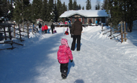 Lammintuvan porotilalle pääsee sekä hiihtäen, moottorikelkkaillen että autolla. Tilan kahvilasta löytyy maistuvaa uunituoretta pullaa, tila tarjoaa myös mm. poro- ja huskyajeluja sekä lasten moottorikelkkailua. Osoite: Takalontie 15, 93999 Kuusamo. Tarkista aukioloajat ja hinnat Lammintuvan kotisivulta. Karttalinkki.